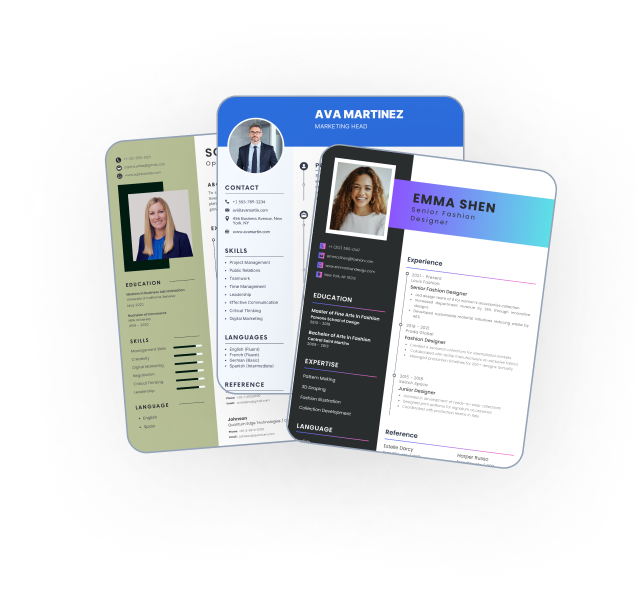Stand out in a crowded job market with the AI resume builder. Instantly craft a resume that’s tailored to spark the interest of job recruiters and get you hired faster. Let AI do the heavy lifting. Leverage our cutting-edge AI to craft professional resumes tailored to your career goals. Experience the power of our AI Resume Writer and see how it can transform your resume writing process—faster, smarter, and effortlessly professional!